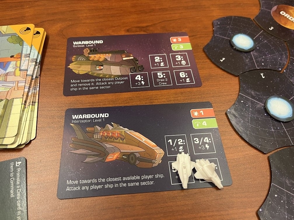 Space exploration is dangerous and each round the Warbound will activate by drawing as many cards as there are players.