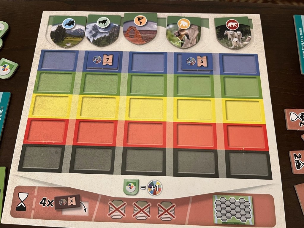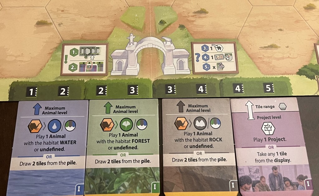 My favourite aspect of Ark Nova is the action selection puzzle, finding the best order of operations to power up the actions you need to take. Sanctuary uses a similar mechanism to dictate which tiles you can select from on your turn and the strength of your action.