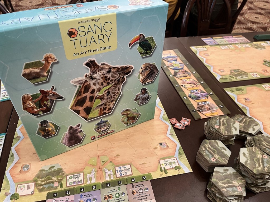 While I only played half a game at Gen Con, I was very impressed with Sanctuary. It kept aspects of Ark Nova that I love and presented an interesting tile placement puzzle. The actions in the game are simplified enough that the game can move quickly, and be played with friends who don’t enjoy heavy games, but still offers some good strategic depth. I can’t wait to play this one again.